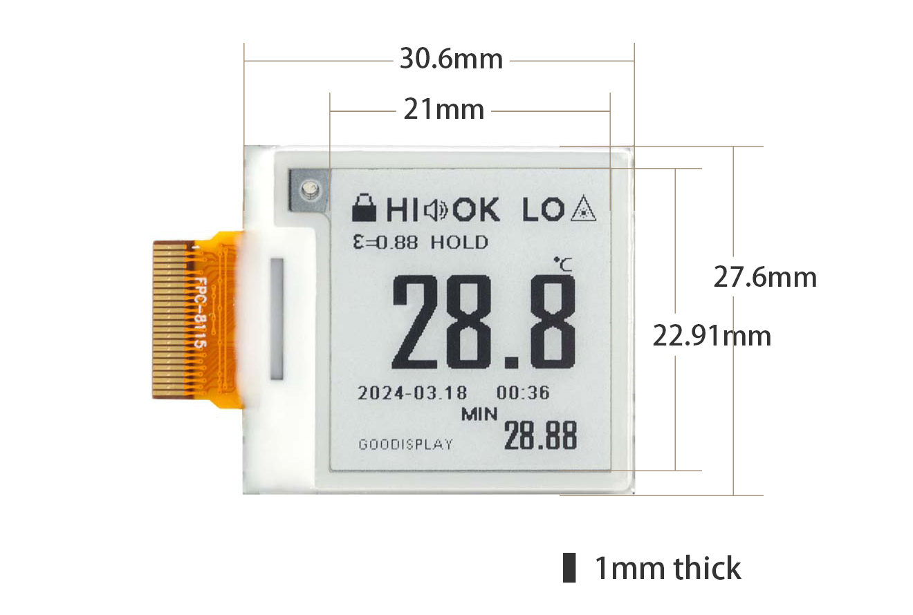 Introducing the 1.22-inch E Ink display: a game-changer for low-power tech! It holds images without power—perfect for solar or battery-operated devices. Ideal for shelf tags, smart tags, wearables, smart home gadgets, industrial tools, and smart cards, this display offers unbeatable power efficiency and lasting visibility. Upgrade your tech with the GDEM0122T61 and experience next-level performance and clarity! |