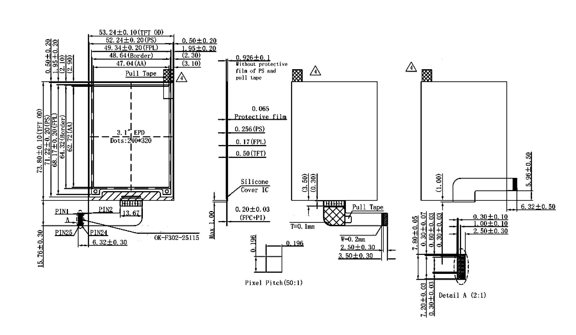 | PART NUMBER | GDEQ031T10 | CONNECTOR | 25 PIN FPC | ||