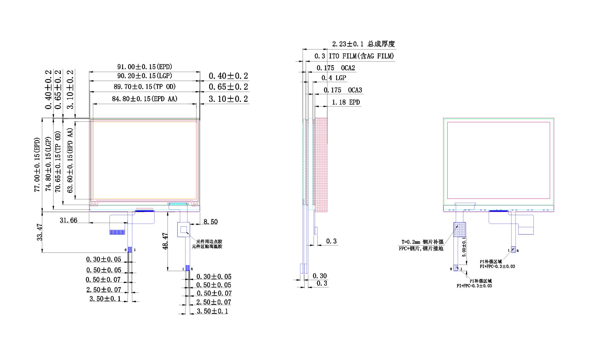 | Connector of Front-light | 6 Pin FPC |