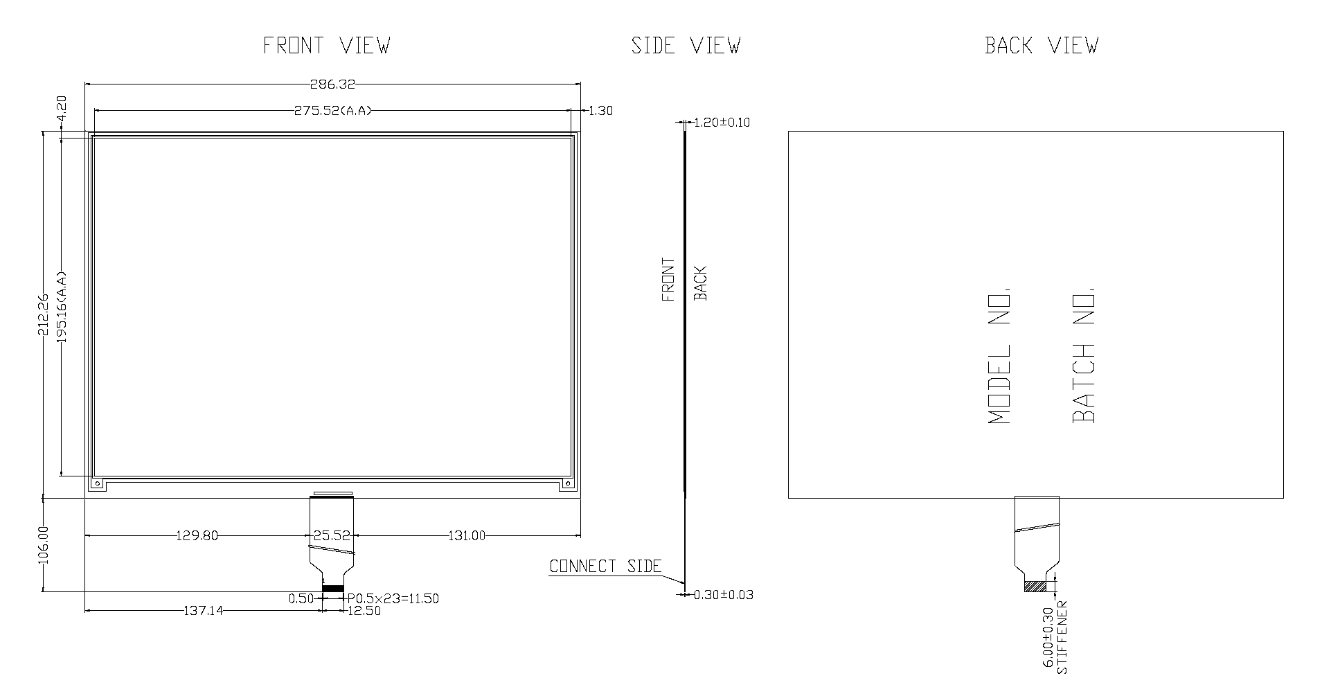 | ACTIVE SIZE(mm) | 275.52×195.16 | OPERATING TEMP. | 0℃~40℃ | ||
