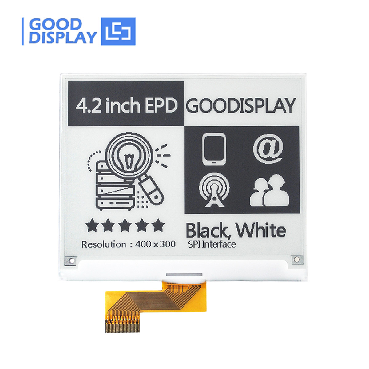 | Black & White (B/W) Displays | Supports fast refresh, partial refresh, and 4-level grayscale | 0.97" to 10.3" |