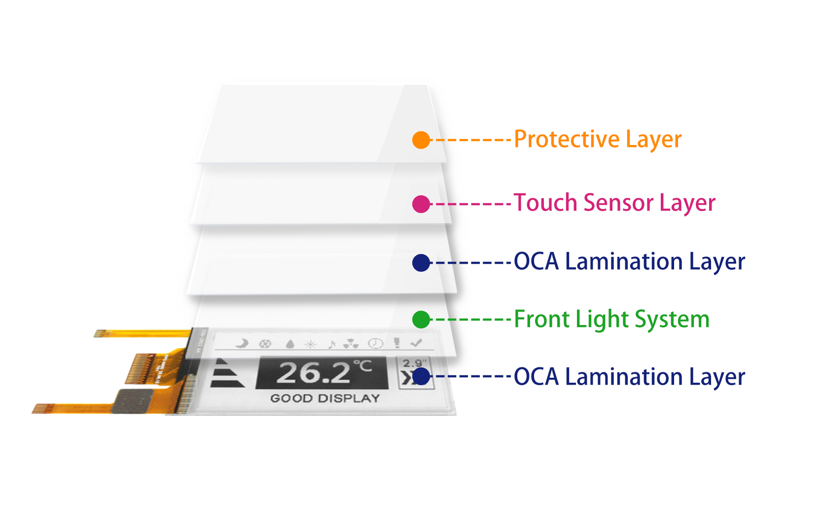 Ultra-Thin Integrated Solution – Seamlessly combines capacitive touch, uniform front lighting, and E Ink display in only 2.15 mm thickness.