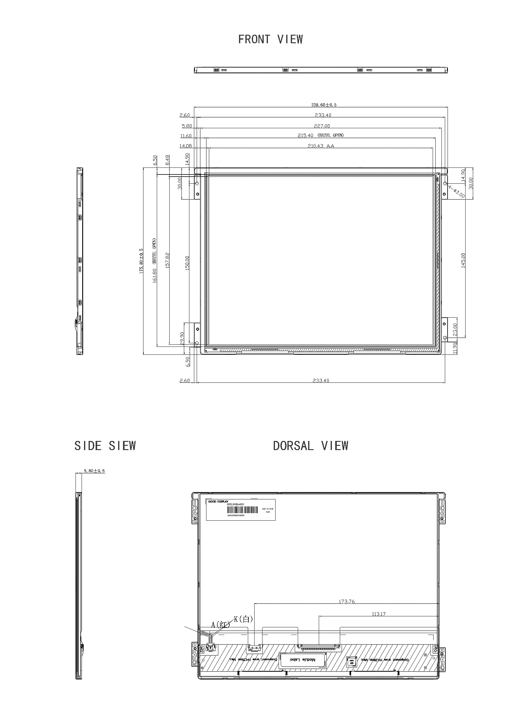 | OUTLINE DIMENSION(mm) | 238.60×175.80×5.80 | SURFACE TREATMENT | Anti-Glare,3H |