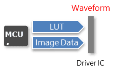 The driving waveforms (LUTs, lookup tables) are pre-programmed in the driver IC.