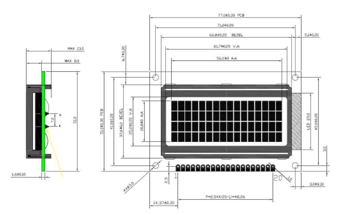 | Dot Size(W×H) | 0.55x0.55 mm |